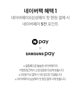 - 네이버페이X삼성페이 첫 현장 결제 시 네이버페이 5천 포인트 지급