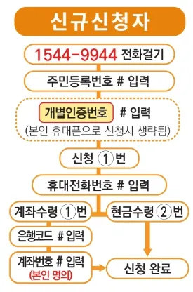 신청대리 서비스를 요청하실 수 있습니다. 신청을 위해서는 본인확인은 필수이며 주민등록번호, 지급받을 본인 명의의 계좌번호 등을 미리 준비하세요.