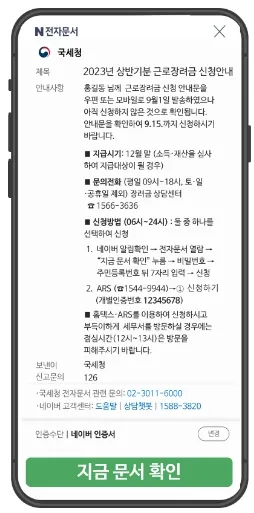모바일안내문 도착 알림 확인 ( 국민비서앱, 네이버, KT 알림 문자) > 본인인증 후 안내문 열람(국민비서는 본인인증 생략) > 신청하기 클릭 > 홈택스에서 신청